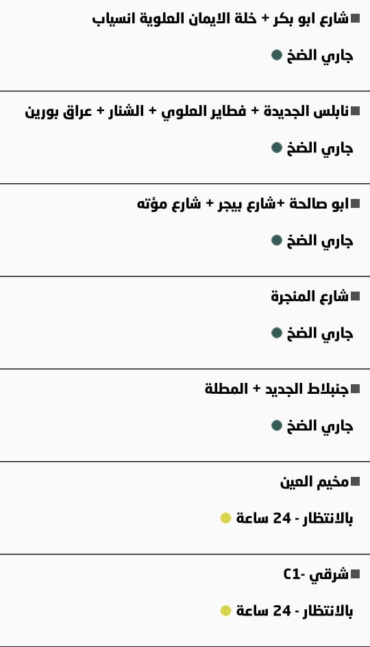 بلدية نابلس: جدول توزيع المياه