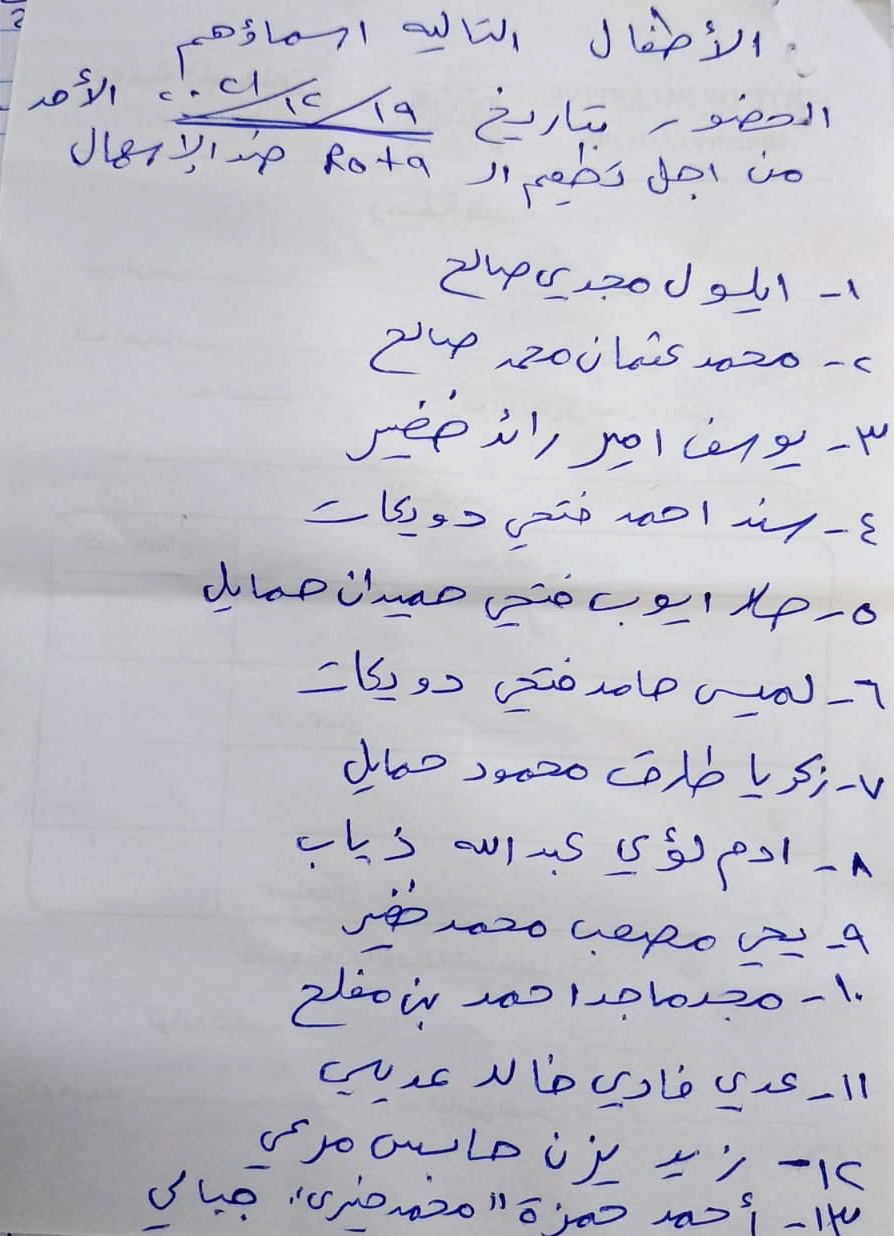 نشرت بلدية بيتا، السبت 18.12.2021، أسماء الأطفال الذين لديهم تطعيم Rota، الأحد 19/12/2021 في عيادة صحة بيتا.