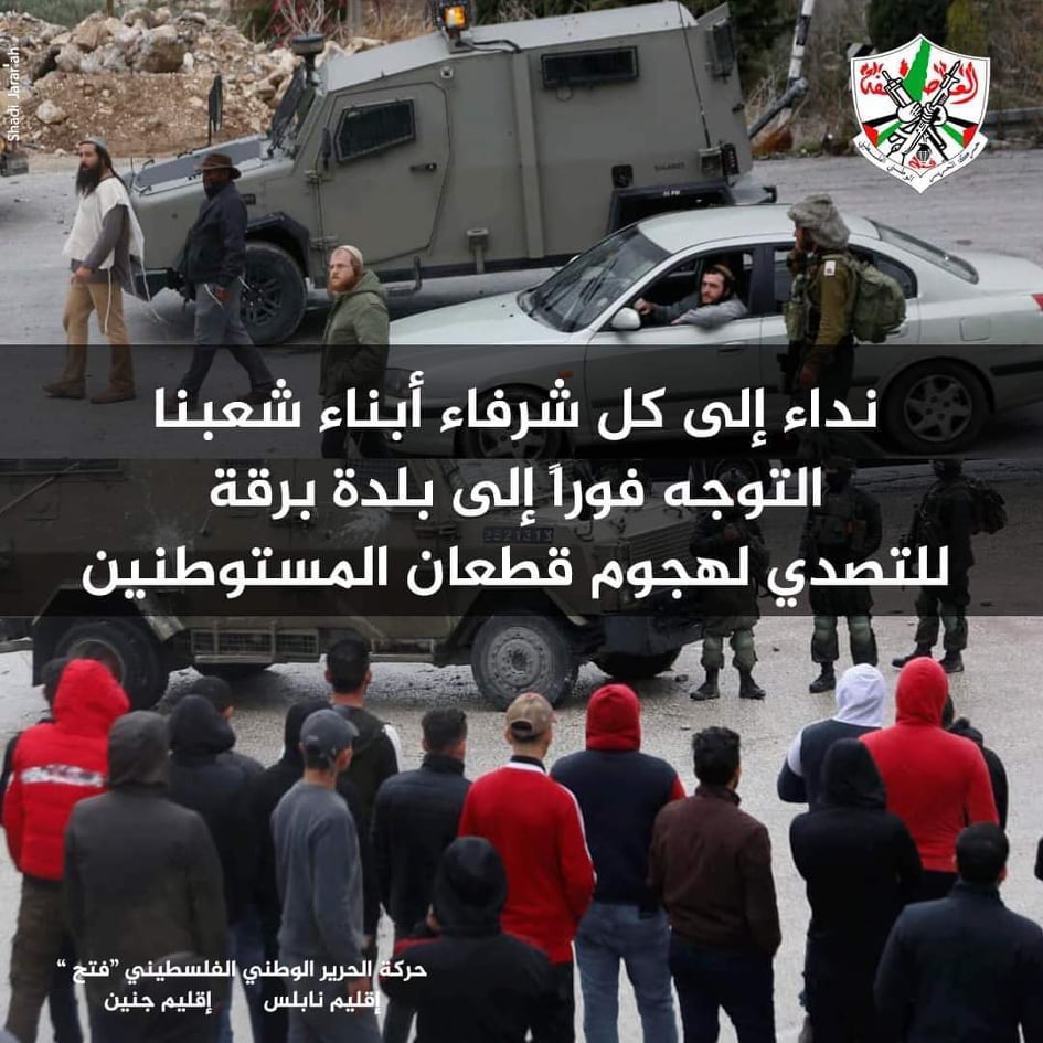 تصاعد الاعتداءات ضد الفلسطينيين في برقة من قبل المستوطنين والقوات الإسرائيلية، وحركة فتح تناشد للتصدي للهجوم.