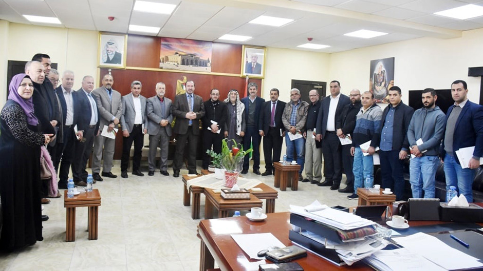 محافظ سلفيت عبد الله كميل يجتمع مع رؤساء المجالس البلدية والقروية المنتخبين الجدد في المحافظة ويناقش عدداً من القضايا، التي تهم المواطنين.