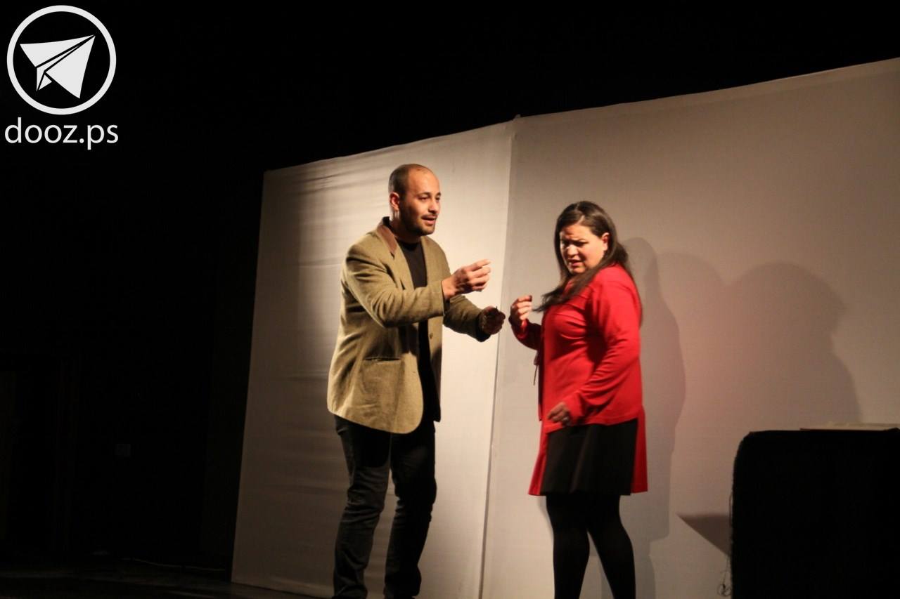 رائدة غزالة وأديب صفدي في حوار مسرحي أثناء العرض[/caption]