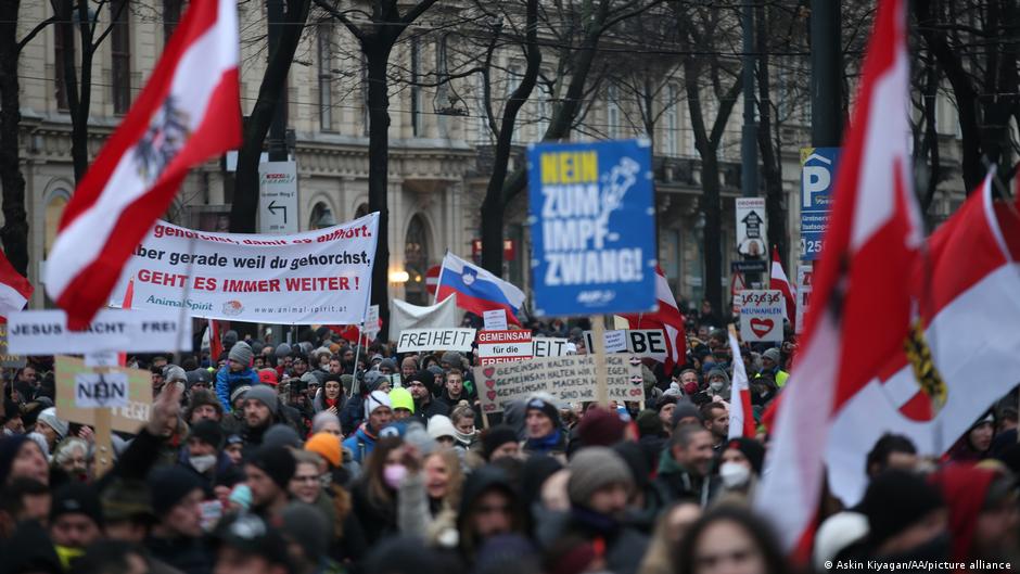 شهدت النمسا في الأسابيع الماضية مظاهرات كبيرة رافضة لمشروع القانون والقيود المفروضة للحد من انتشار كورونا.