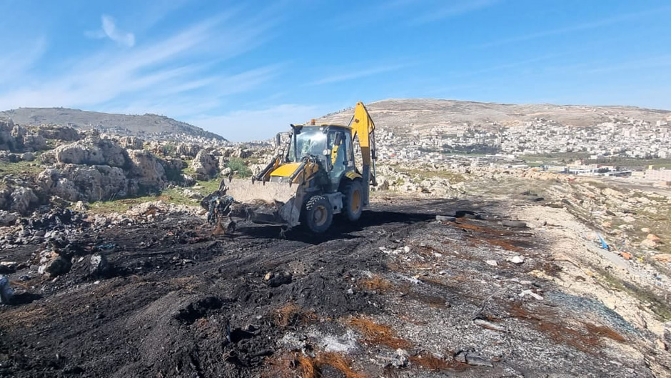سلطة جودة البيئة تضبط شاحنة فلسطينية تجمع مخلفات نفايات مركبات وإطارات تالفة في جبل روجيب شرق نابلس.