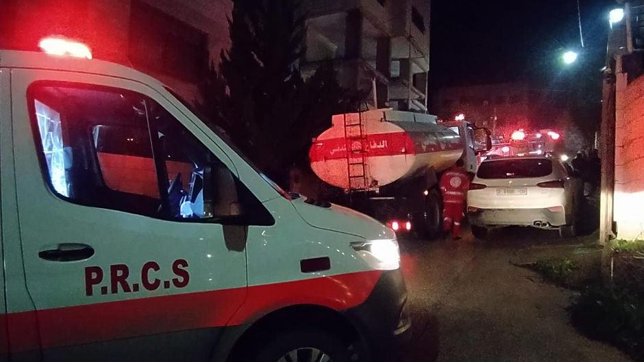 إطفائية بلدية نابلس وطواقم الدفاع المدني يخمدون حريق منزل في إسكان روجيب وينقذون ربة منزل وابنتها الصغيرة.