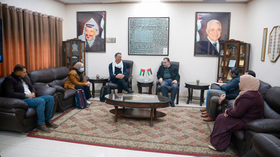 ورحب المصري بالضيف مشيدا بالعلاقات الثنائية التي تربط الطرفين مؤكدا على عمق الشراكة والتوأمة الفعالة مع المقاطعات الفرنسية فال دو مارن وسين سان دونيه والذي يأتي المشروع من خلالهما، مطلعا الوفد الضيف على آخر المستجدات على صعيد أعمال البلدية ومشاريعها ومعاناة المواطنين جراء إجراءات إسرائيل على المدينة.
