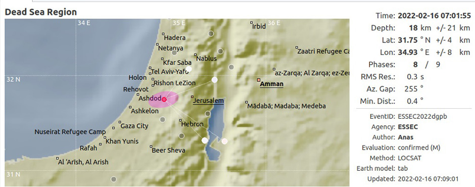 ضربت هزة أرضية خفيفة، عند نحو الرابعة من فجر الأربعاء 16.02.2022، مناطق شمال فلسطين.