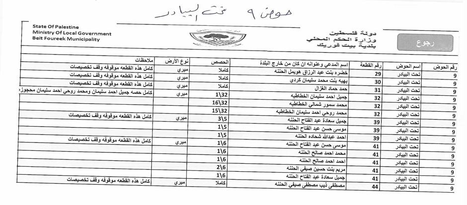 بلدية نابلس: جدول توزيع المياه