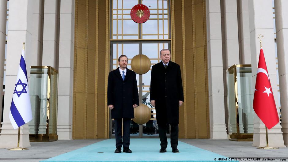 فيما اعتبر الرئيس التركي أردوغان أن زيارة نظيره الإسرائيلي ستكون "نقطة تحول في العلاقات" بين البلدين أكد الرئيس الإسرائيلي هرتسوغ على الأمل في حل الخلافات "باحترام متبادل"، قائلا: "كلنا أبناء إبراهيم".