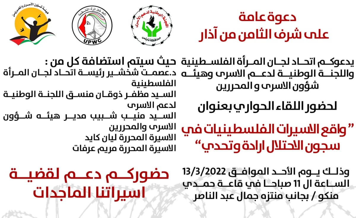نابلس: لقاء حول واقع الأسيرات في السجون