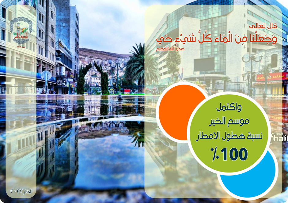 معدل هطول الأمطار على مدينة نابلس خلال الموسم المطري الحالي.