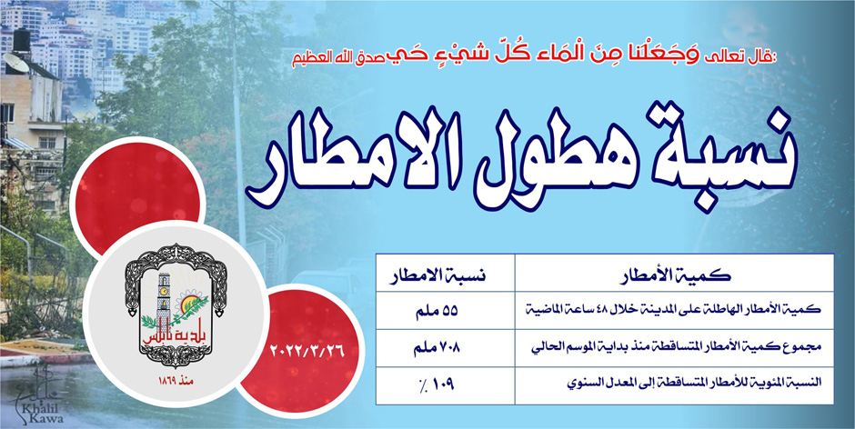 بلدية نابلس تنشر كمية الأمطار الهاطلة على مدينة نابلس وضواحيها خلال الـ48 ساعة الماضية.