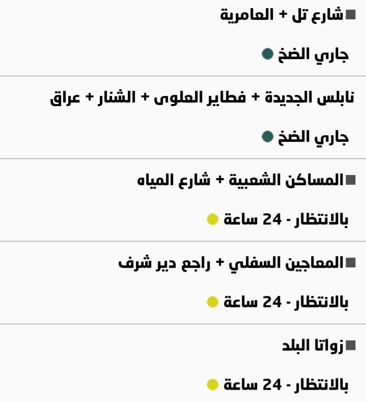 جدول توزيع المياه في مدينة نابلس وضواحيها ليوم الأحد 27.03.2022.