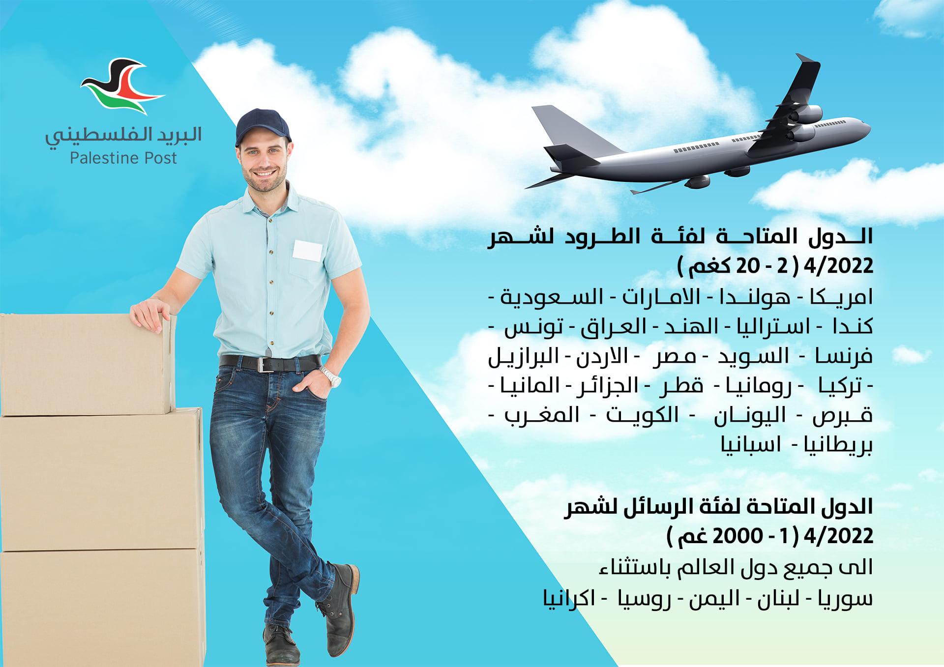 البريد الفلسطيني يعلن عن الدول المتاحة لفئة الطرود لشهر 4.