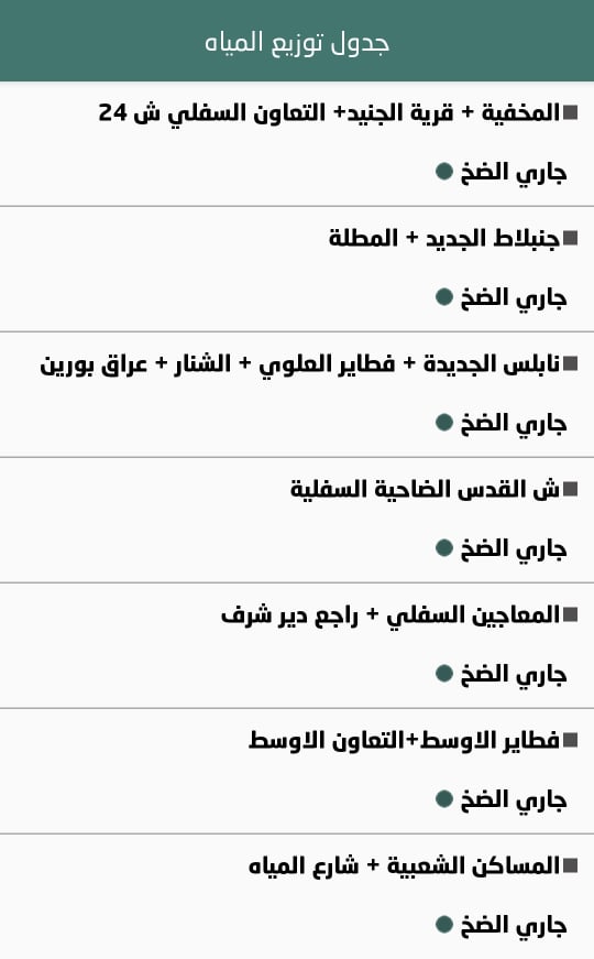 جدول توزيع المياه في مدينة نابلس وضواحيها ليوم الأربعاء 13.04.2022.