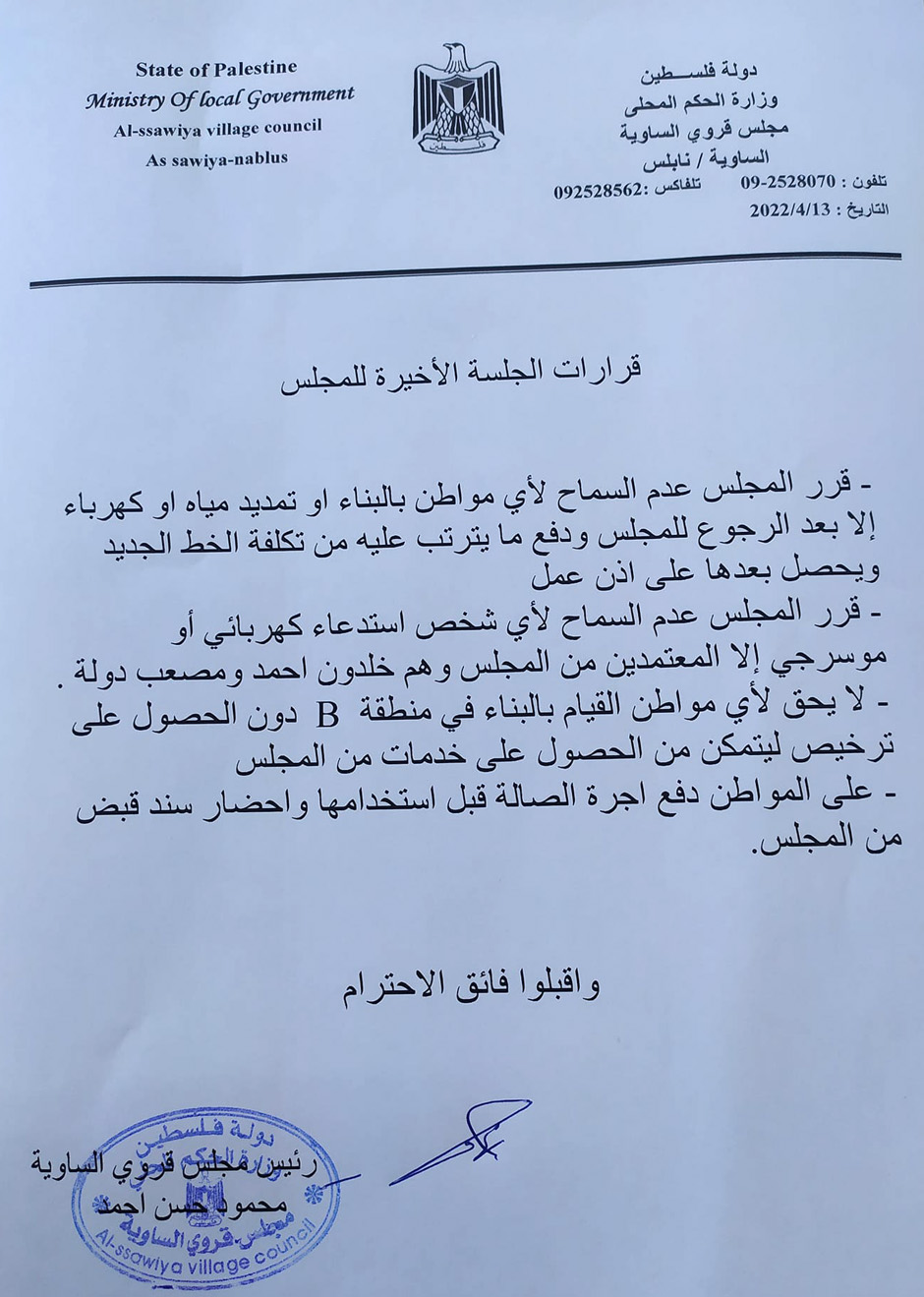 مجلس قروي الساوية ينشر القرارات التي اتخذها في الجلسة الأخيرة.
