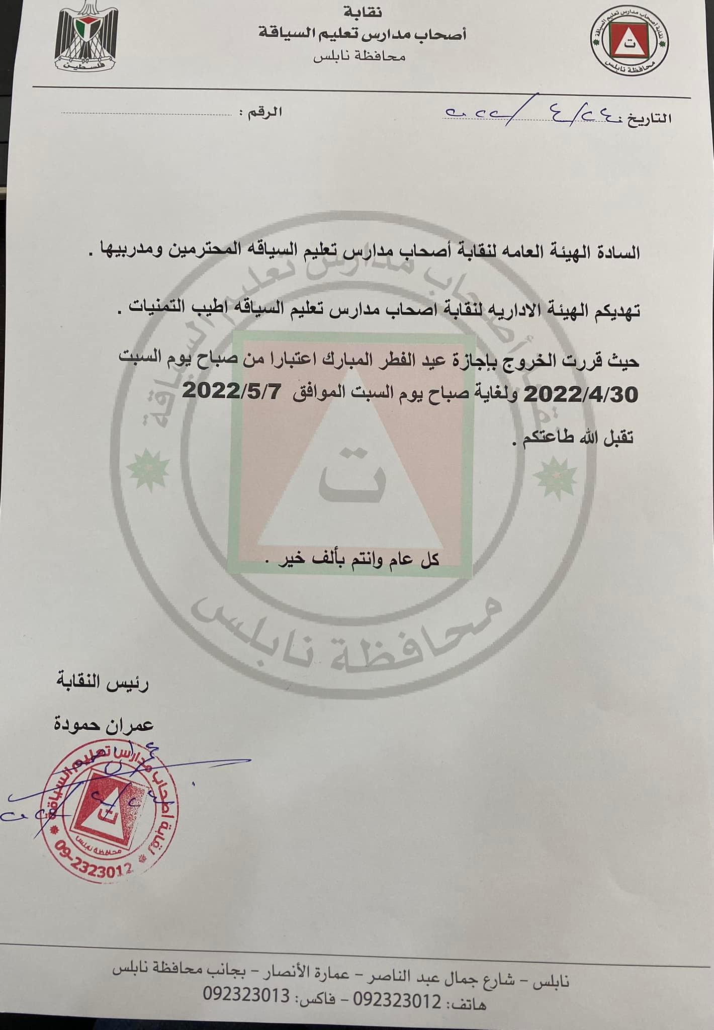 عطلة العيد لنقابة أصحاب مدارس السياقة