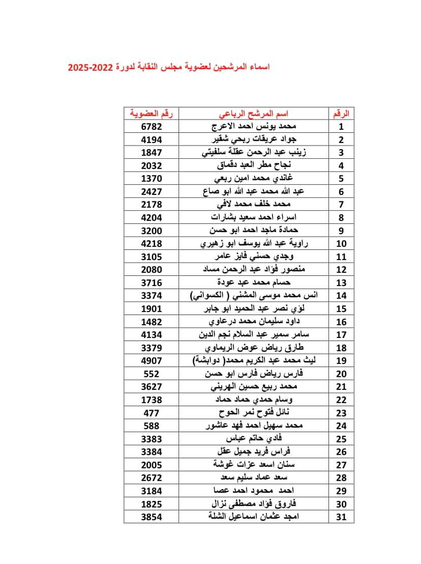 قائمة المرشيحين لانتخابات مجلس نقابة المحامين
