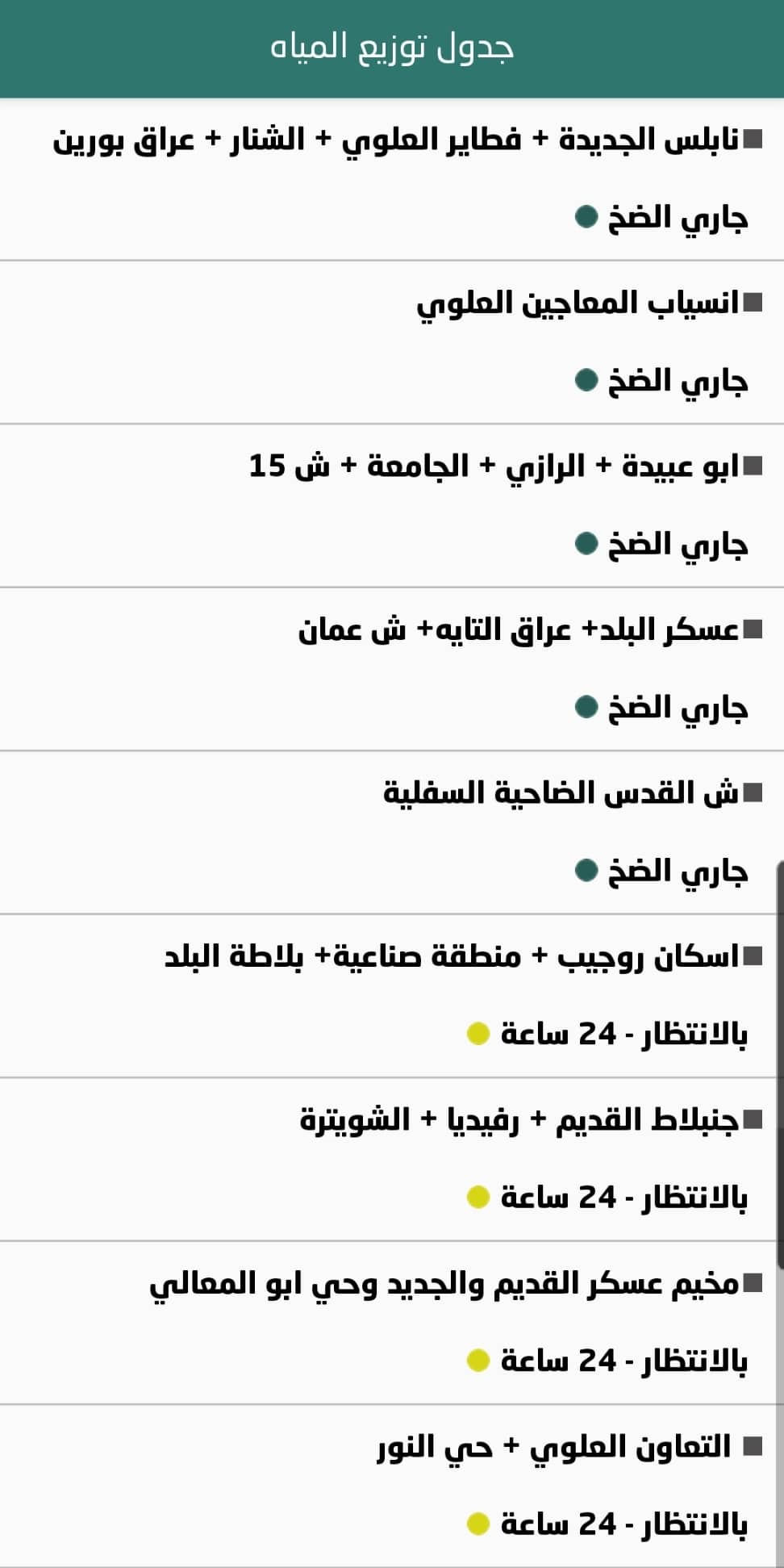 بلدية نابلس: جدول توزيع المياه