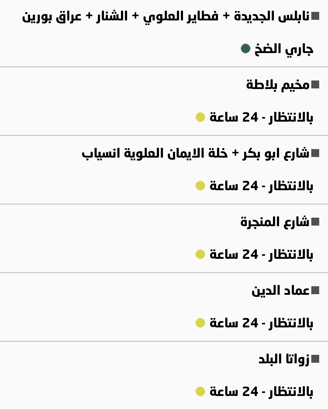 بلدية نابلس: جدول توزيع المياه