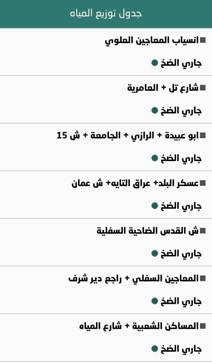8. بلدية نابلس: جدول توزيع المياه
