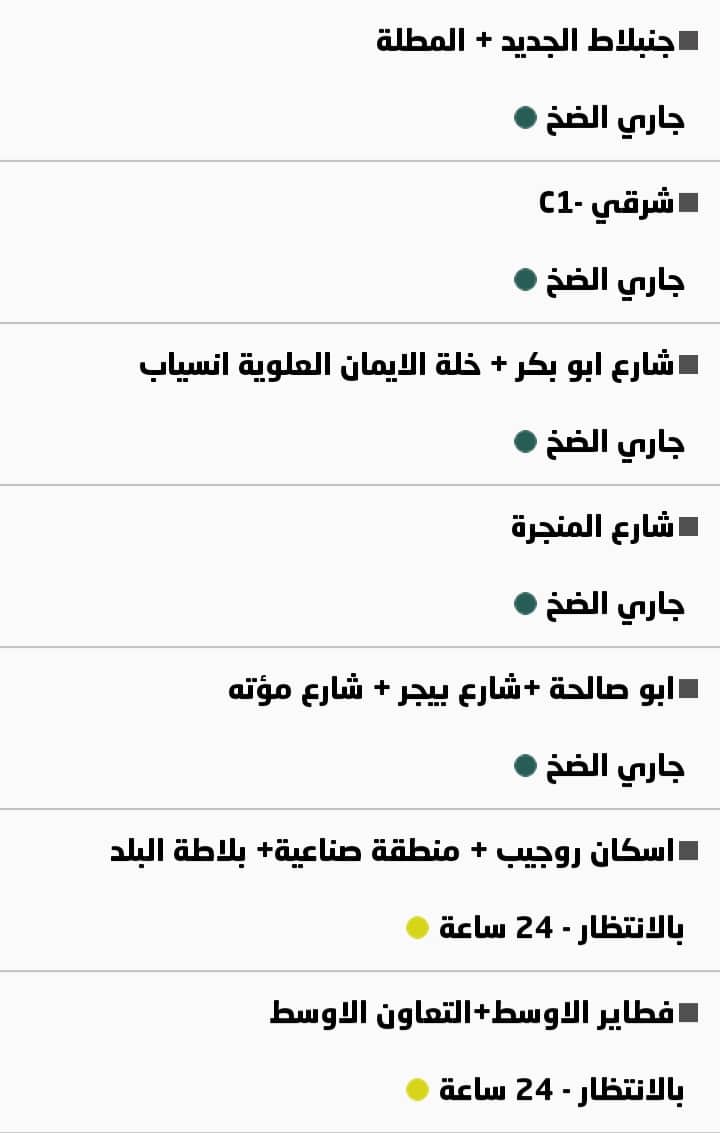 جدول توزيع المياه في روجيب