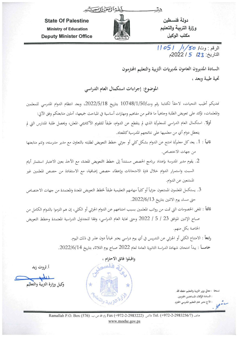 وزارة التربية والتعليم تعلن عن إجراءات استكمال العام الدراسي وخطط التعويض للمدارس التي تعطل بها الدوام جزئياً أو كلياً، وإلغاء الخصومات في حالة التزام المعلمين.