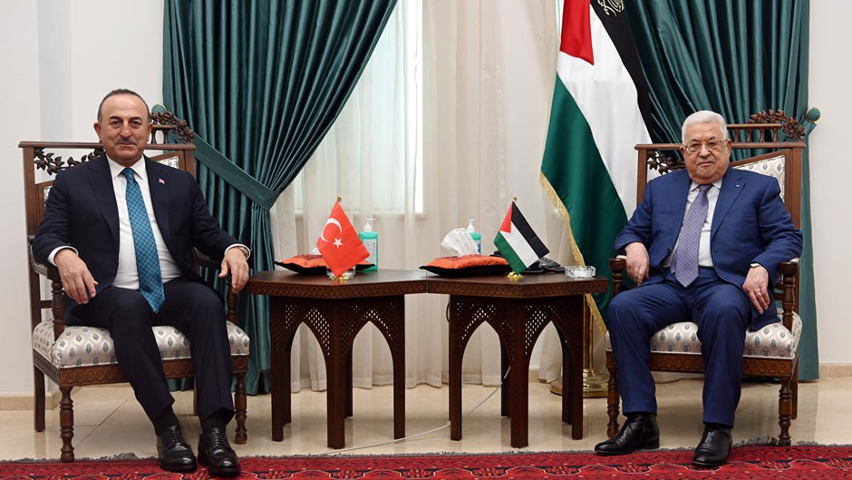 الرئيس الفلسطيني محمود عباس يستقبل وزير الخارجية التركي ويطلعه على آخر المستجدات في الأراضي الفلسطينية والاعتداءات الإسرائيلية.