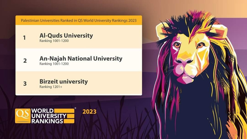 جامعة القدس تتصدر الجامعات الفلسطينية بحسب تصنيف QS العالمي لعام 2022/2023، وتأتي ضمن أفضل 61-70 جامعة عربية.