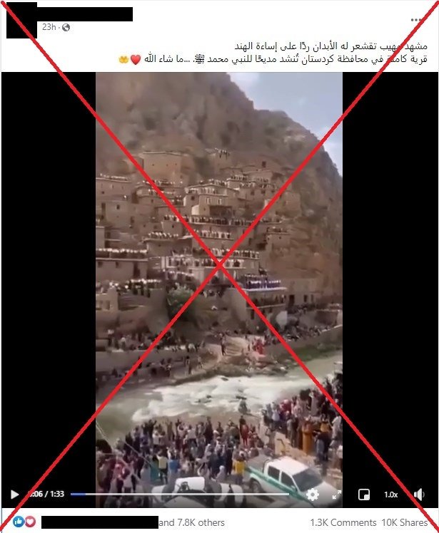 وفي البحث عن حقيقة الأمر، فقد تبين أن المقطع مصدره قرية بالنجان في كردستان غرب إيران وتم تصويره في أيار/مايو الماضي ابتهاجا بعيد الفطر، وليس كردة فعل على تصريحات المسؤولة الهندية، إلا أن مروجي المقطع عمدوا على نشره تزامنا مع ردود فعل العالم الإسلامي ضد المسؤولة الهندية.