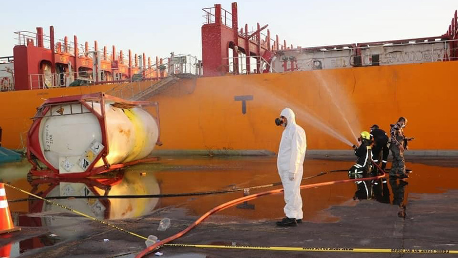 وقال الناطق الإعلامي باسم مديرية الأمن العام إن "المختصين وفريق المواد الخطرة في الدفاع المدني يتعاملون لغاية هذه اللحظة مع حادثة تسرب الغار في ميناء العقبة".