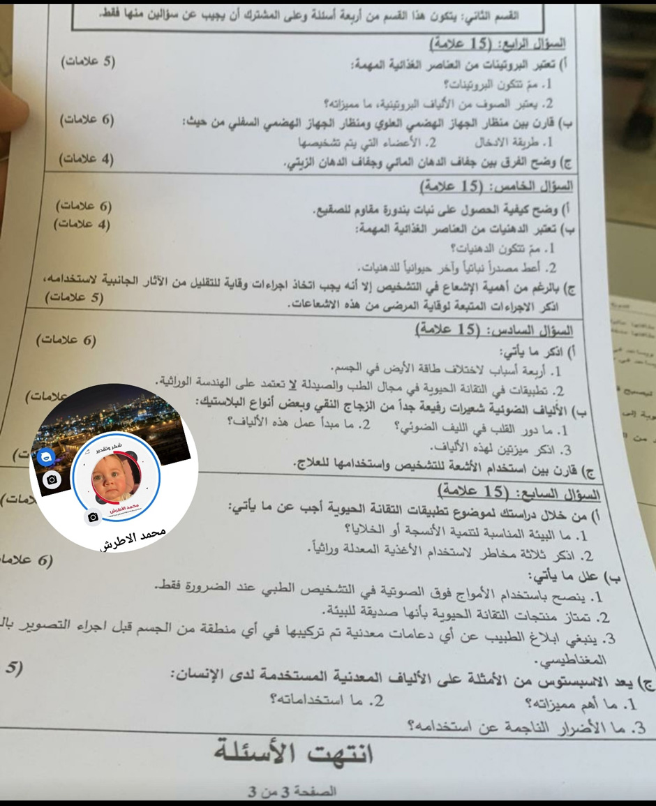 أسئلة امتحان الثانوية العامة لمادة الثقافة العلمية للفرع الأدبي، الأربعاء 29.06.2022.