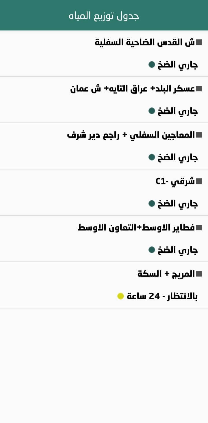 المناطق المزودة بالمياه حاليا