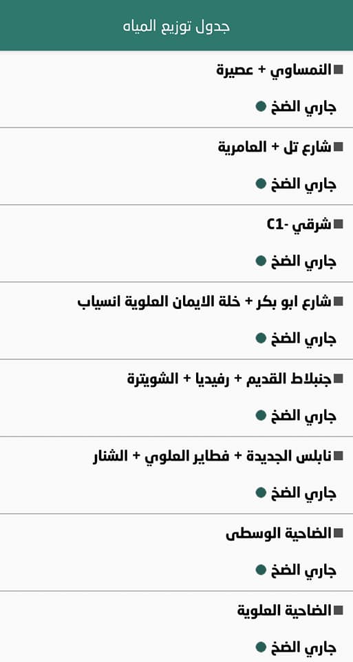 جدول توزيع المياه في مدينة نابلس وضواحيها ليوم الجمعة 09.09.2022.