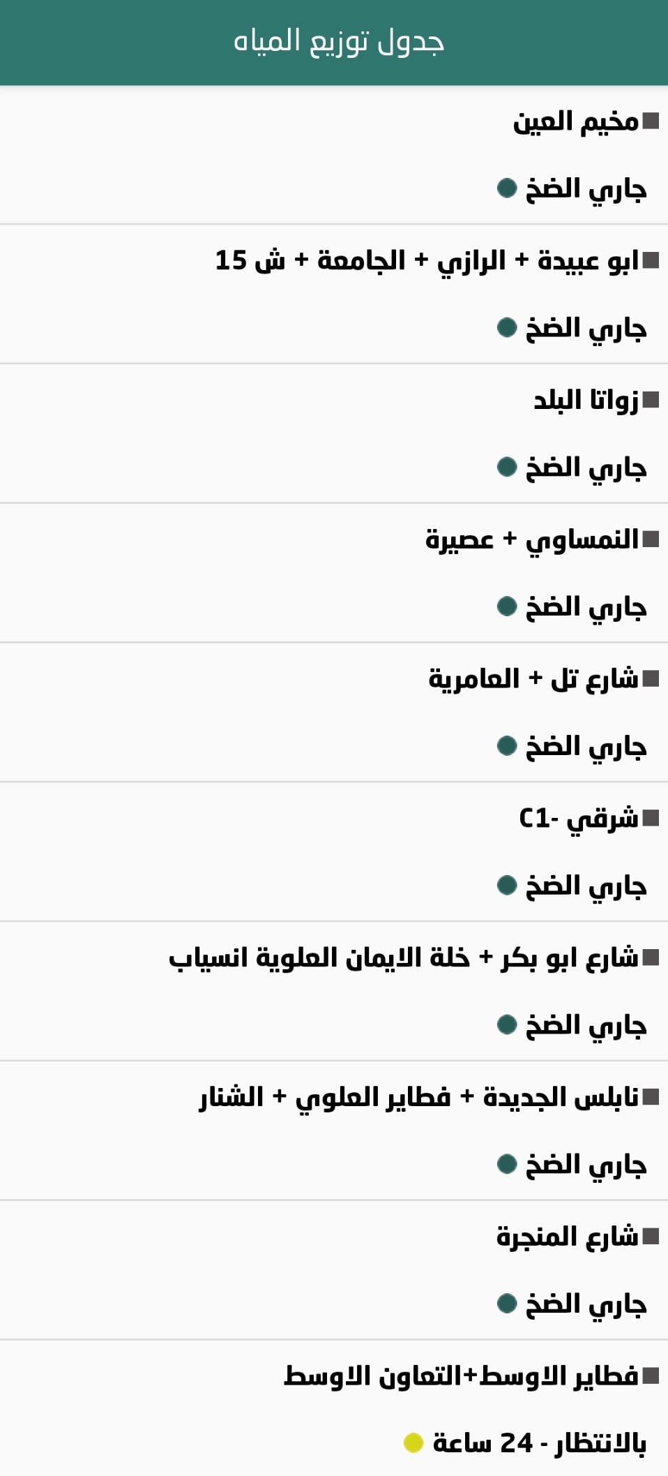 بلدية نابلس: جدول توزيع المياه