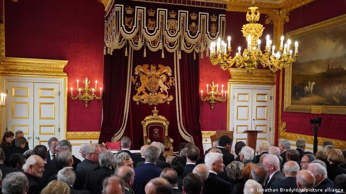 مجلس اعتلاء العرشيذكر أن هذا المجلس لم يعقد منذ 70 عامًا، نظرًا لبقاء الملكة إليزابيث الثانية في المنصب لسبعة عقود. وانعقد العرش، أو مجلس الخلافة، في قصر سانت جيمس، المقر الرسمي للملك، لإعلان تنصيبه.