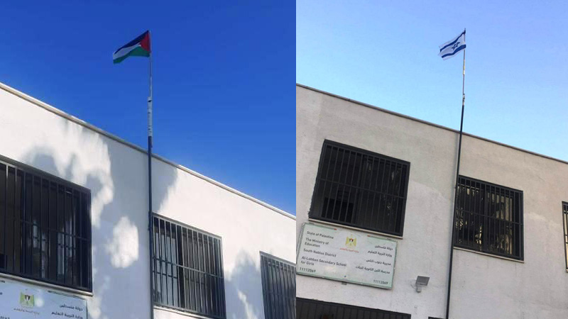 يذكر أن قوات الجيش الإسرائيلي، أزالت فجر الخميس، العلم الفلسطيني عن مبنى مدرسة اللبن الثانوية للبنات، جنوب نابلس، ووضعت مكانه علم دولة إسرائيل.