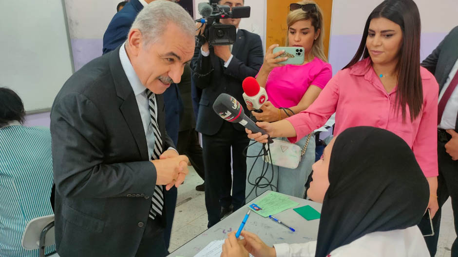 اشتية يتفقد قاعات التوجيهي في مدرسة كفر نعمة