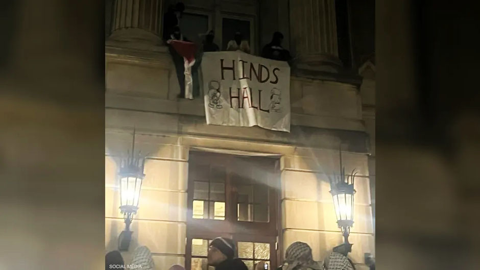 ومنذ مساء الاثنين تحصّن طلاب مؤيّدون للفلسطينيين داخل مبنى "قاعة هاملتون" احتجاجاً منهم على الحرب المستمرة منذ أكثر من 6 أشهر في قطاع غزة.