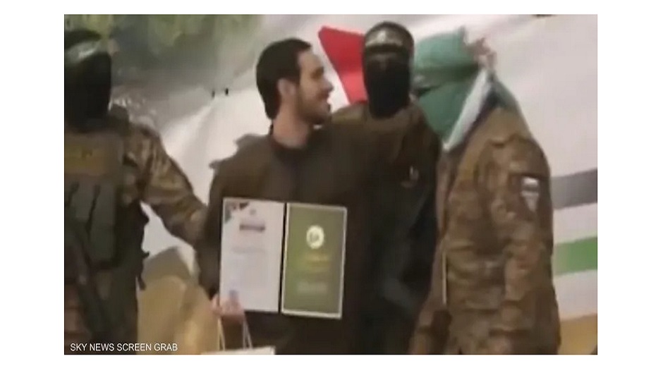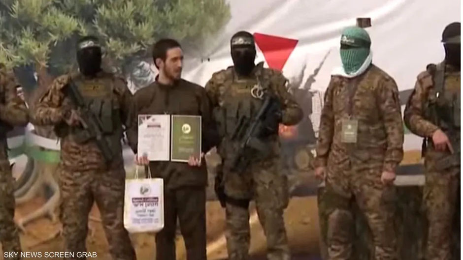 فيديو.. إسرائيلي مفرج عنه يقبل رأس مقاتلي القسام