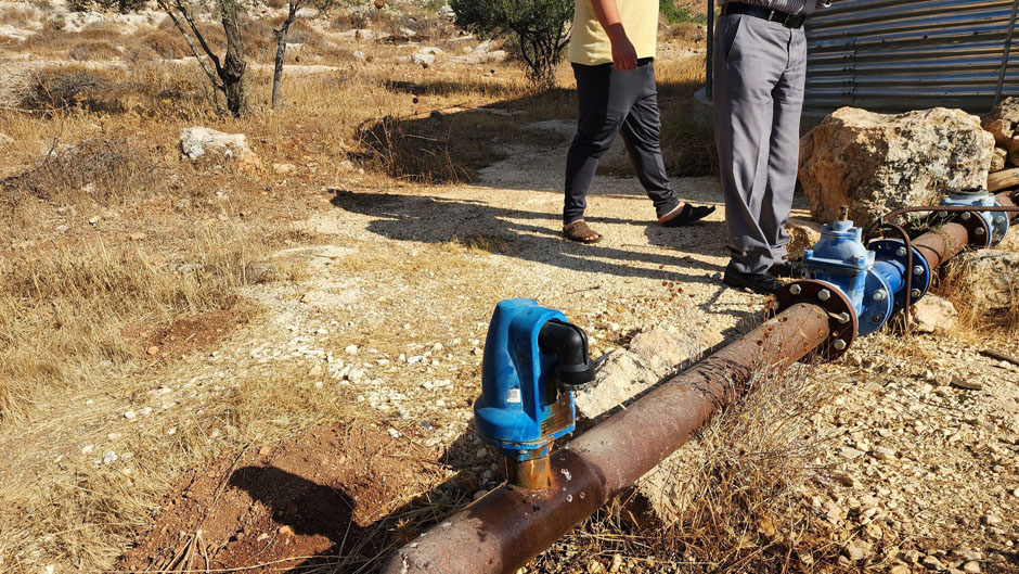 مستوطنون يتلفون عدادات للمياه ويعطبون عجلات مركبة في قرية دوما جنوب نابلس.