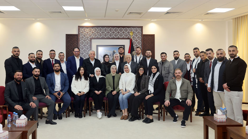 الرئيس محمود عباس يستقبل وفد سككرتاريا الشبيبة الفتحاوية المنتخبين، ويؤكد على أهمية الشباب ومسؤولياتهم باعتبارهم قادة المستقبل.
