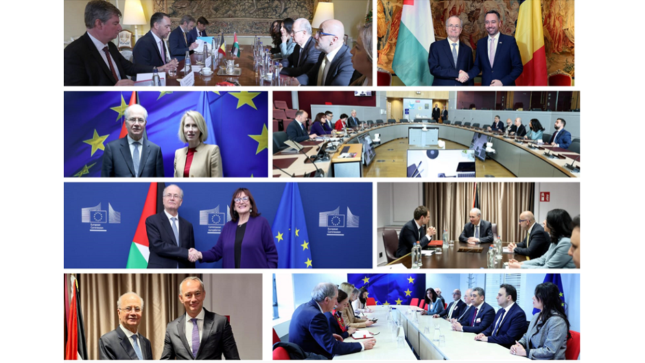 وشملت اللقاءات كلا من: نائب رئيس الوزراء، وزير الخارجية البلجيكي ماكسيم بريفو، والممثلة العليا للاتحاد الأوروبي للشؤون الخارجية كايا كالاس، ومفوضة الاتحاد الأوروبي لشؤون المتوسط دوبرافكا شويتسا، ووزير الدولة لشؤون الشرق الأوسط وشمال أفريقيا وجنوب آسيا في وزارة الخارجية والتنمية البريطانية هاميش فالكونر، والممثل السامي لمجلس السلام لغزة نيكولاي ملادينوف.