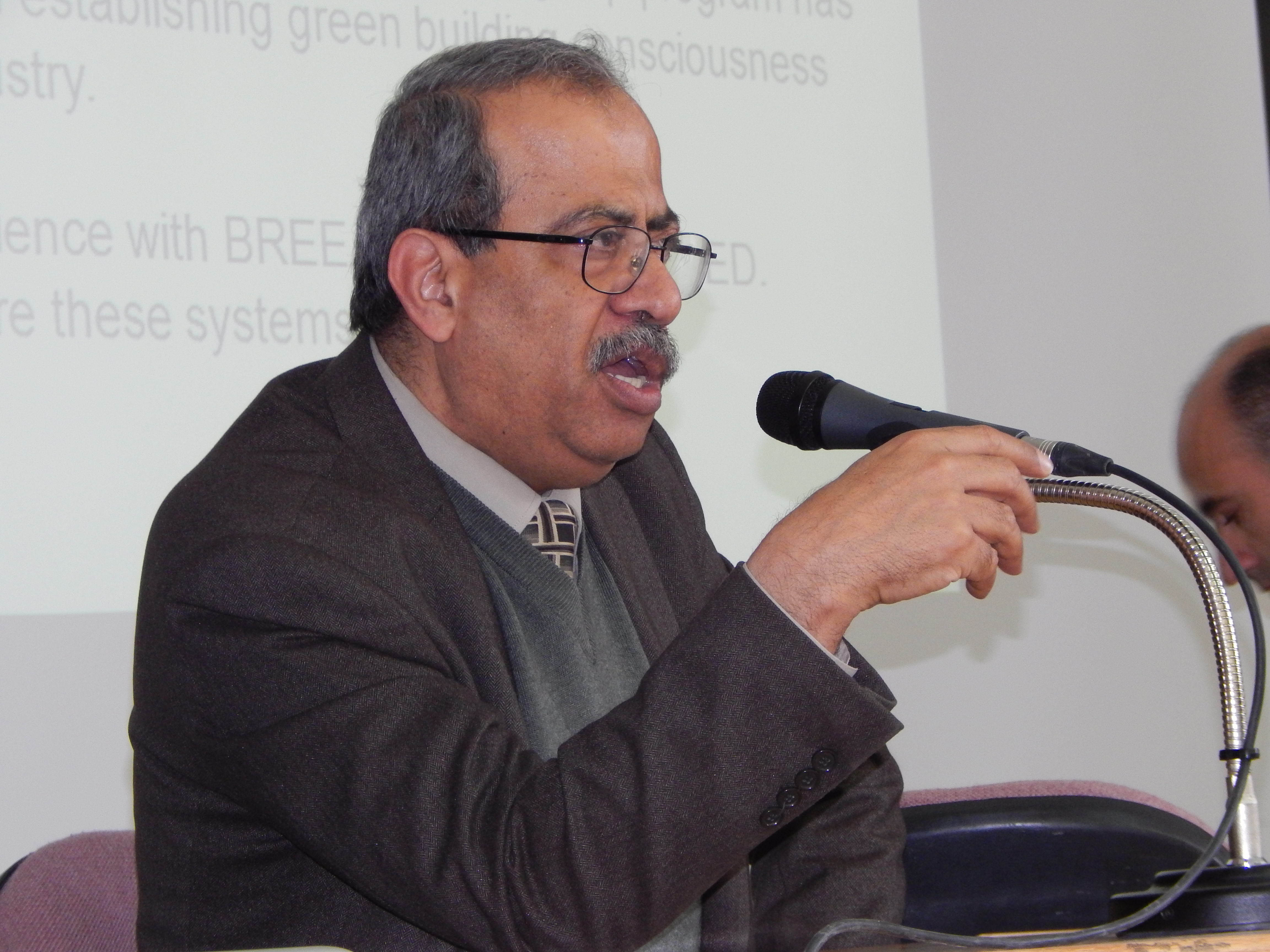 وتحدث د. معتصم بعباع رئيس قسم البناء في كلية الهندسة خلال هذا اللقاء قائلا: "المباني الخضراء هي طريقة حديثة التفكير، حيث أن من يؤسس بناء أخضر يستطيع أن يحصل على ميزات عديدة كتوفير الطاقة والنقود التي تصرف عليها على المدى البعيد، كما أن التكلفة التشغيلية للمبنى ستكون أقل بكثير من المباني الأخرى، اذا تم تصميمه بشكل سليم"