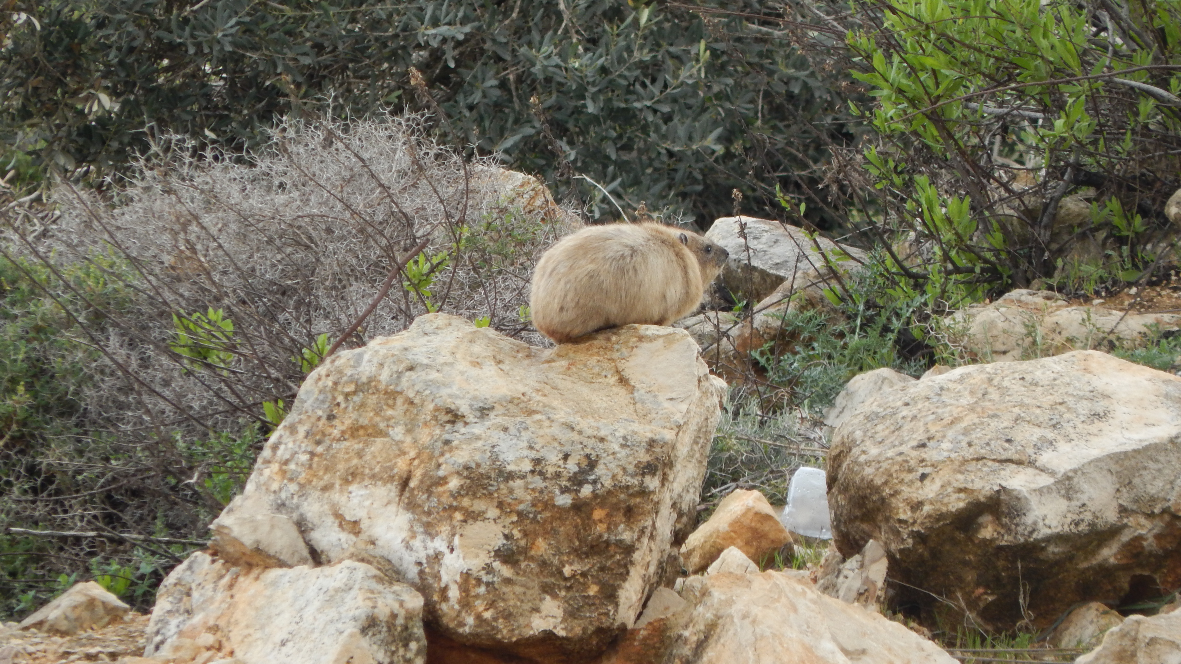 حيوان الوبر الصخري يستلقي على احدى الصخور في منطقة العامرية غرب نابلس[/caption]