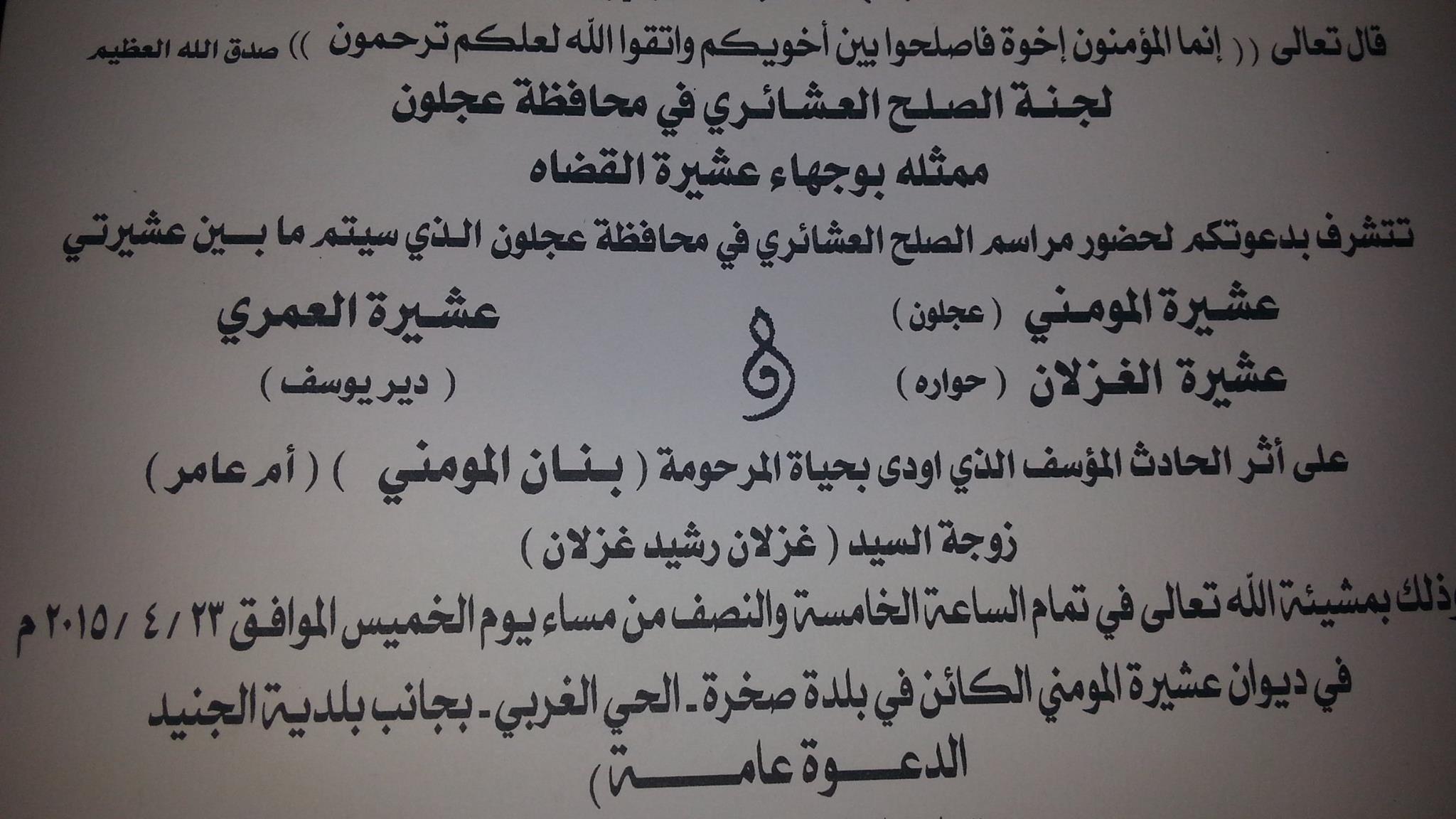 الدعوة للصلح العشائري تكون في الصحف وعبر مكبرات الصوت في المساجد[/caption]
