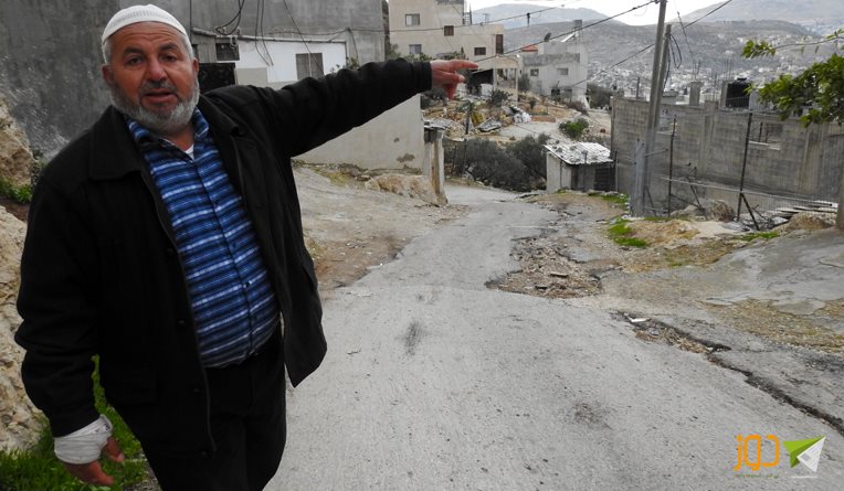 بدأ الحاج علي سليمان نصاصرة أحد سكان حارة واد أبو موسى حديثه عن الطريق الوحيدة التي تصل لحارتهم قائلاً: "فتحنا هاي الطريق على نفقتنا الخاصة، وإلنا أكثر من أربع سنوات بنطالب بلدية بيت فوريك بإصلاح الطريق المحفرة بفعل مياه الأمطار، وكل شتاء بنجيب باطون على حسابنا وبنسكر الحفر بس بترجع بتخرب من جديد، الطريق صعب الواحد يمشي فيها، وأنا قبل يومين وقعت على إيدي وهيها ملفوفة زي ما أنت شايف".