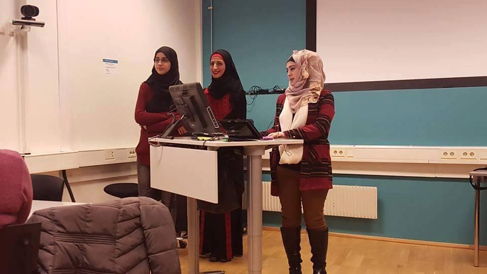 من جهة أخرى، قدّمت الطالبات فكرة للبحث، الذي سيتمّ إنجازه في الأشهر القادمة ومتابعته والإشراف عليه من أساتذة من جامعة أوسلو وتقييمه فيما بعد ويختصّ بمواضيع الحرب والسلام.