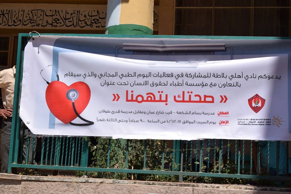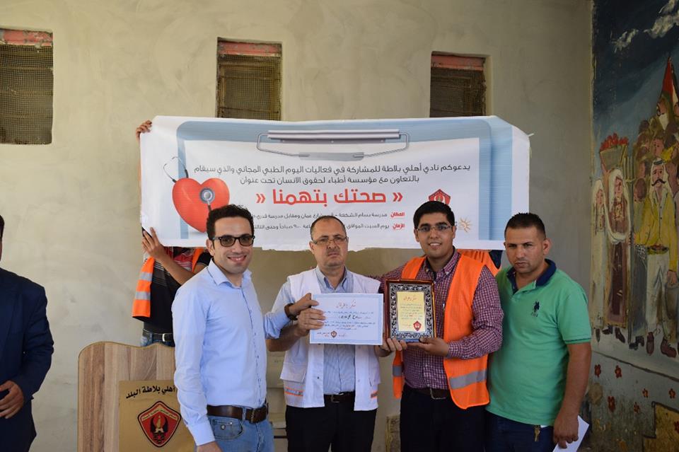 نظم نادي أهلي بلاطة البلد وبالتعوان مع أطباء لحقوق الإنسان يوما طبيا مجانيا بعنوان "صحتك بتهمنا"، يوم السبت الموافق 10-06-2017.