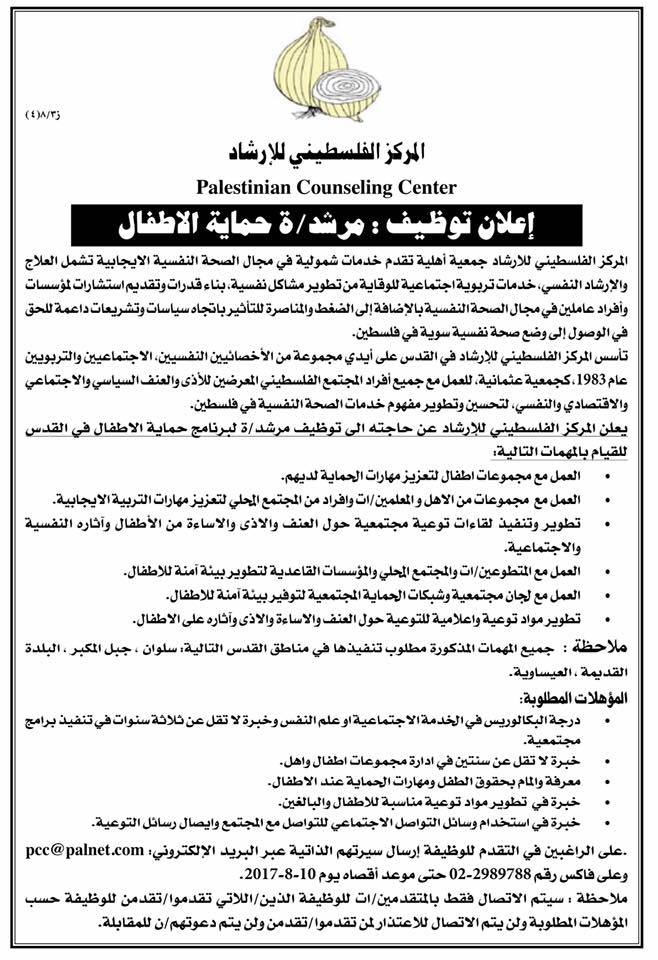 وظيفة شاغرة في المركز الفلسطيني للإرشاد