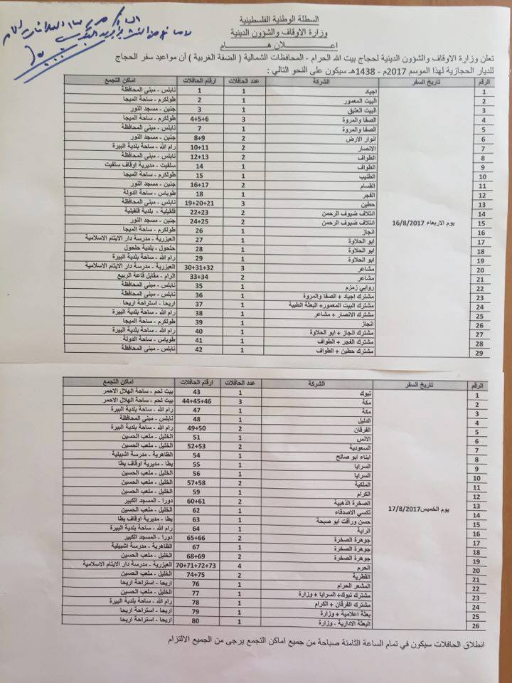 مواعيد سفر حجاج الضفة الغربية